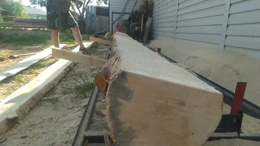 Показываю как одному перевернуть бревно на пилораме с помощью тали или лебедки.