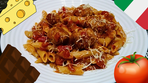 ПАСТА ПЕННЕ С ТЕФТЕЛЯМИ В ТОМАТНО-ШОКОЛАДНОМ СОУСЕ / Очень быстрое и вкусное итальянское блюдо