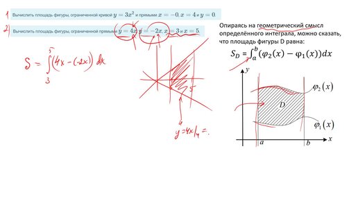 Вычисление площади фигуры с помощью определенного интеграла (Задача 10, онлайн)