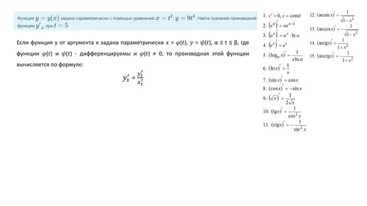 Вычисление значения производной, заданной параметрически, в точке (Задача 4а, онлайн)