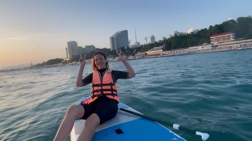 Тренируемся стоять на морских волнах, город Сочи, Краснодарский край на море летом вечером