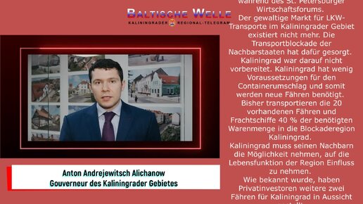 Gouverneur Alichanow fordert weitere Fähren für Blockaderegion