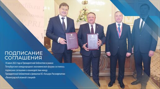 Подписание соглашения о сотрудничестве между Президентской библиотекой и филиалом АО «Концерн Росэнергоатом» «Ленинградская атомная станция»