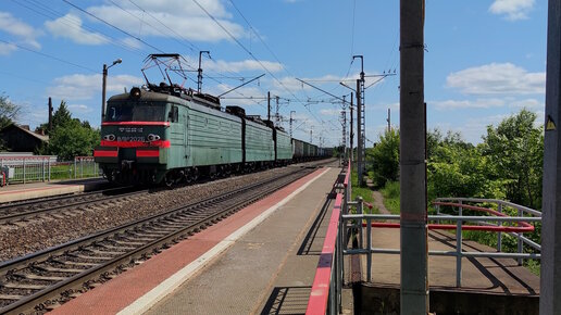 Железная дорога. Остановился на красный, не много постоял и поехал дальше ВЛ11М-202/203А