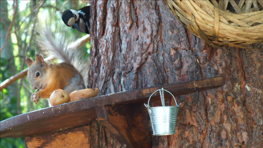 Как Шустрик и дятел делят кормушку