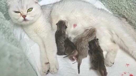 Котята кушают маму кошку пищат ползают 😇 Котятам 2 дня