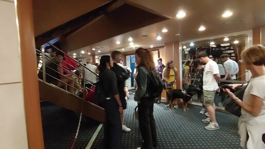Каюты на пароме и толпа на выходе из него. Ждали когда откроют двери в гараж около 30 минут