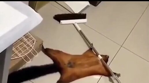 Белка, которую застали в доме, решила выкрутиться, инсценировав собственную смерть, используя для убедительности подручный инструмент