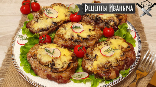 Мясо запеченное в духовке с грибами и сыром