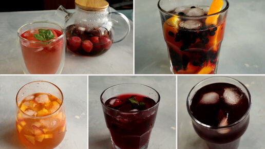 ТОП-5 Рецептов вкусного холодного чая| Чай с персиком, клубникой, гранатом и с ягодами