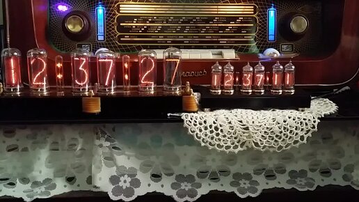 Ламповые ЧАСЫ ИН14 - 6 . ИН 18 на фоне Лампового приёмника Беларусь 57 .