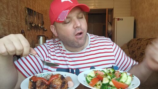 ОБЖОР Гречка с шашлыком и салат из свежих овощей