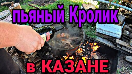 Пьяный кролик в казане. Картошка с шампиньонами на костре.