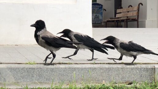 Молодые воронята ходят за мамой-вороной и требуют еду 🙉