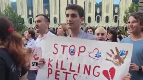 В центре Тбилиси проходит акция против жестокого обращения с бездомными собаками и кошками.