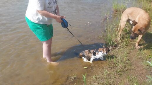Купание красного коня. Кошка Феня приехала искупаться.