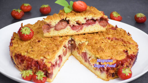 Ходовой и самый лучший пирог со свежей клубникой 🍰 Кусочек буквально тает во рту