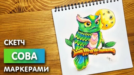 Рисунок скетч маркерами "Сова" для скетчбука | Срисовка картинки поэтапно для начинающих