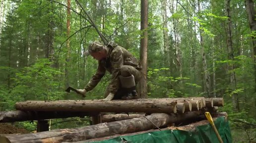 51 серия ЖИВУЩЕГО В ГЛУШИ. СТРОЮ ЗЕМЛЯНКУ НЕ СМОТРЯ НА ЛЮТЫЙ ХОЛОД. УКРЫВАЮСЬ В ТЁПЛОЙ ПАЛАТКЕ. ДОДЕЛАЛ СТЕНЫ. НАКРЫВАЮ ПОТОЛОК. 4К