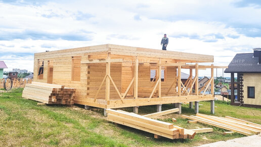 Строительство двухэтажного дома из бруса 10 на 10 с угловой террасой. Процесс и качество работы