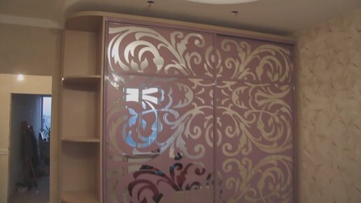 Шкаф купе в спальню. Двери с рисунком, покраска на зеркале. Раздвижная система Крафт.