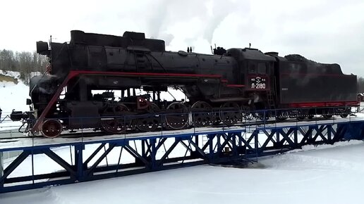 Л-2180. На поворотном кругу в Рускеале. Гудки паровоза
