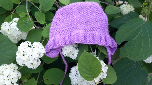 Чепчик жемчужным узором с рюшей. Мк для начинающих.