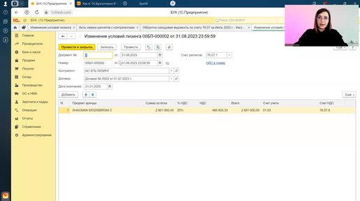 Изменение условий лизинга в 1С 8.3 у лизингополучателя