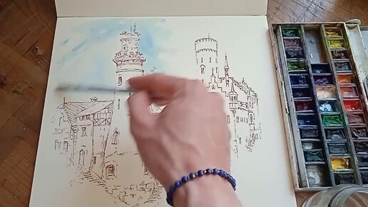 Рисую старинный замок🏰 линер, акварельные краски 🖌🧙♂️