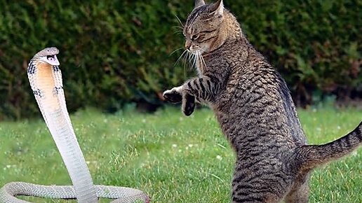 Котик против большой собаки. Кошка против лисы и кобры.