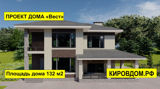 Проект дома "Вест" с небольшой площадью 132 м2, 2 этажа с террасой