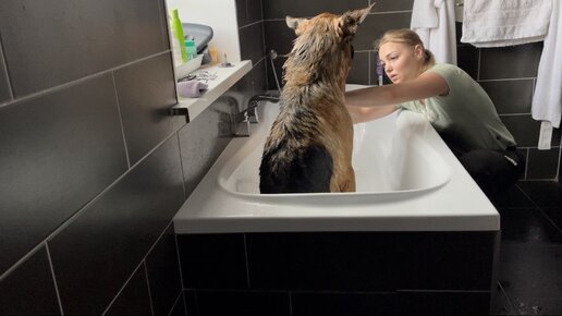 Моем немецкую овчарку дома сами, бесплатно, без регистрации и смс. Побег овчарки из ванны:)