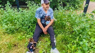 Нам снова отдали наш вольер ДЛЯ ПРОГУЛОК и Влад взял Степашку, Маню и Басика и повел из на прогулку!