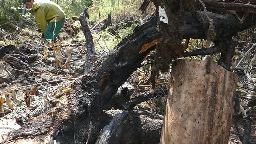 На видео борьба с лесным пожаром в труднодоступной местности вручную. Источник видео ФБУ «Авиалесоохрана»