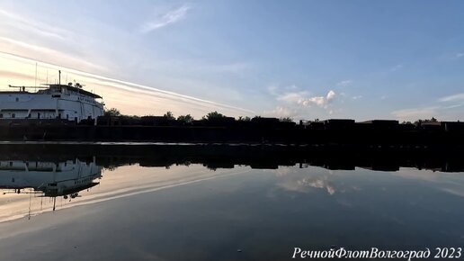 Отражение на воде. Теплоход АБРАМЦЕВО на Волго-Донском судоходном канале.