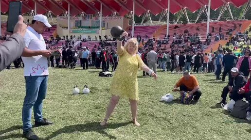 Она поднимает гирю 105 раз, а ты и одного не сможешь