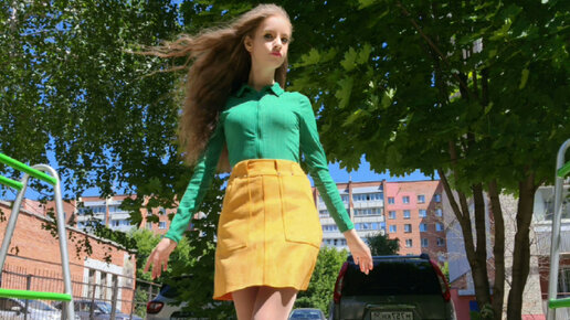 Летние танцы в зелено-желтом наряде