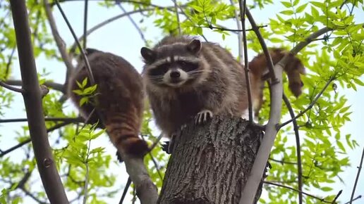 Енот залихватски ныряет за креветками