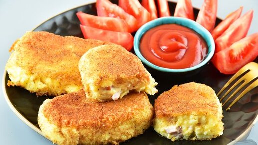 Станут отличной альтернативой привычным котлетам. Картофельные зразы с сыром и ветчиной.