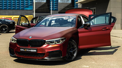 Процесс смены цвета на БМВ 5 серии: из белого в красный хром