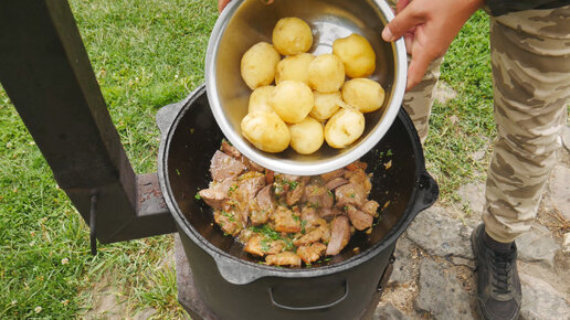Этот рецепт из детства. Показываю как приготовить жаренку в казане на костре.