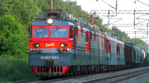 ВЛ80С-932/884 А с перегоняемыми ЭП1М-733 и 753, грузовым поездом и приветливой бригадой
