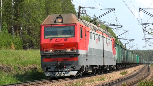 2ЭС6-104 "Синара" грузовым поездом и встречный 2ЭС6 Синара с хозяйственным поездом