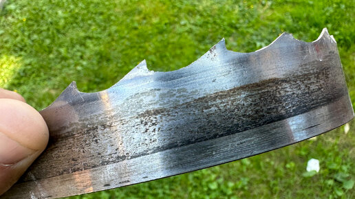 Простой инструмент из обрезка ленточной пилы. Траву удалять гораздо проще.