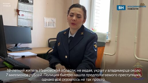 18-летний житель Ивановской области, не ведая, украл у владимирца около 7 миллионов рублей