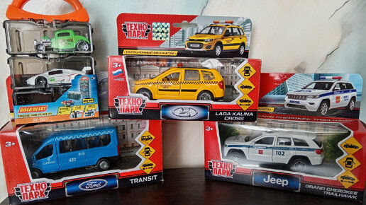 Обзор на модели ТехноПарк. Лада Калина "Такси". Jeep GrandCherokee "ДПС". Ford Transit. Про машинки.