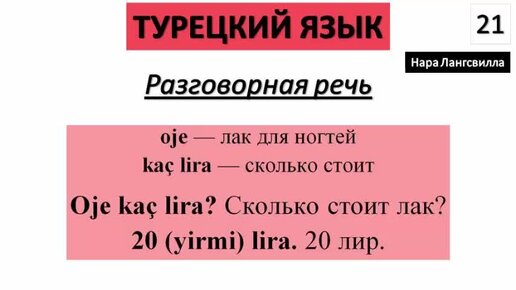 Турецкий язык с Нара Лангсвилла. Разговорная речь. Вопросы kaç lira