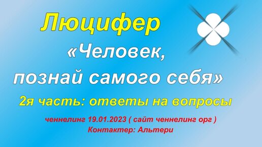 Ченнелинг Люцифер «Человек, познай самого себя сам» 19.01.2023 2я часть: ответы на вопросы. Законы Бога определяют условия жизни человека