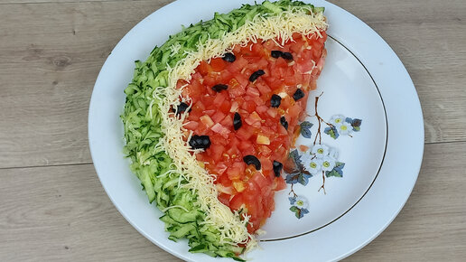 "Арбузная долька" - шикарный и вкуснейший салат. Он будет украшением любого праздничного стола.