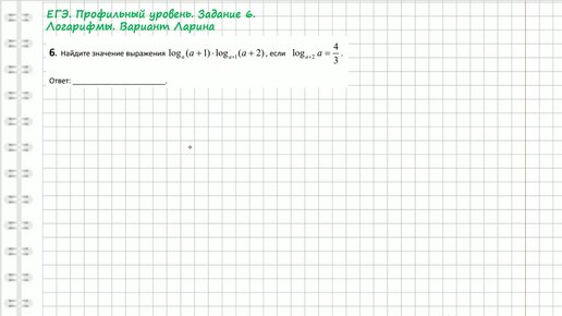 ЕГЭ. Профильный уровень. Задание 6 из Варианта Ларина. Логарифмы